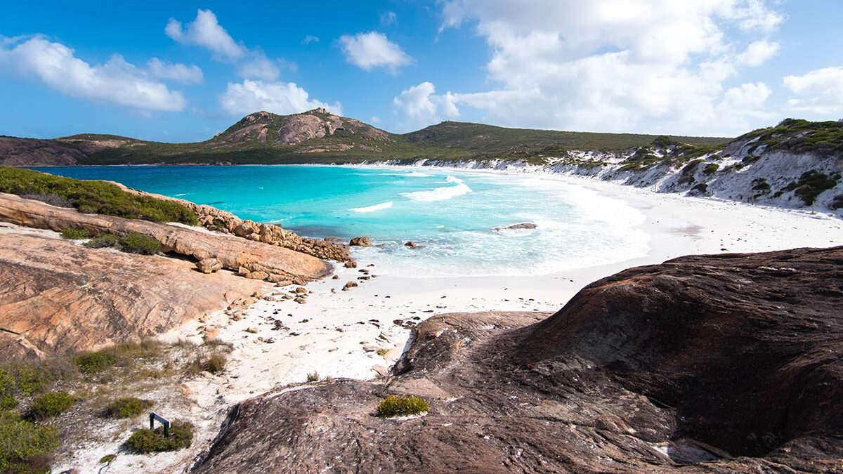 Lucky Bay est l’une des plages les plus emblématiques du Western Australia. Elle a été élue la plage la plus blanche d’Australie et est située dans le parc national de Cape Le Grand. Cette plage de sable blanc à l’eau cristalline est connue pour ses vues imprenables sur les falaises et les montagnes environnantes, ainsi que pour sa population de kangourous qui se prélassent sur le sable et qui font le bonheur de voyageurs.