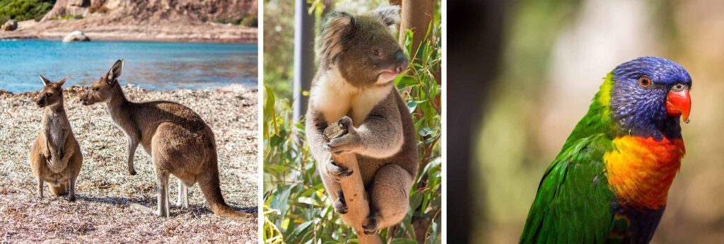 Découvrir aussi des animaux incroyables ; kangourous, échidnés, wallabies, wombats, baleines, dauphins, phoques, tortues, raies manta, cacatoès, casoars, etc. La faune australienne est incroyable et tellement diversifiée.