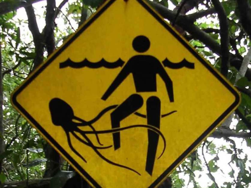 Attention : On vous déconseille vivement de vous baigner à Cape Tribulation depuis la plage. À cause de la présence des box jellyfish (méduses-boîtes) qui peuvent tuer un humain en 20 minutes.
