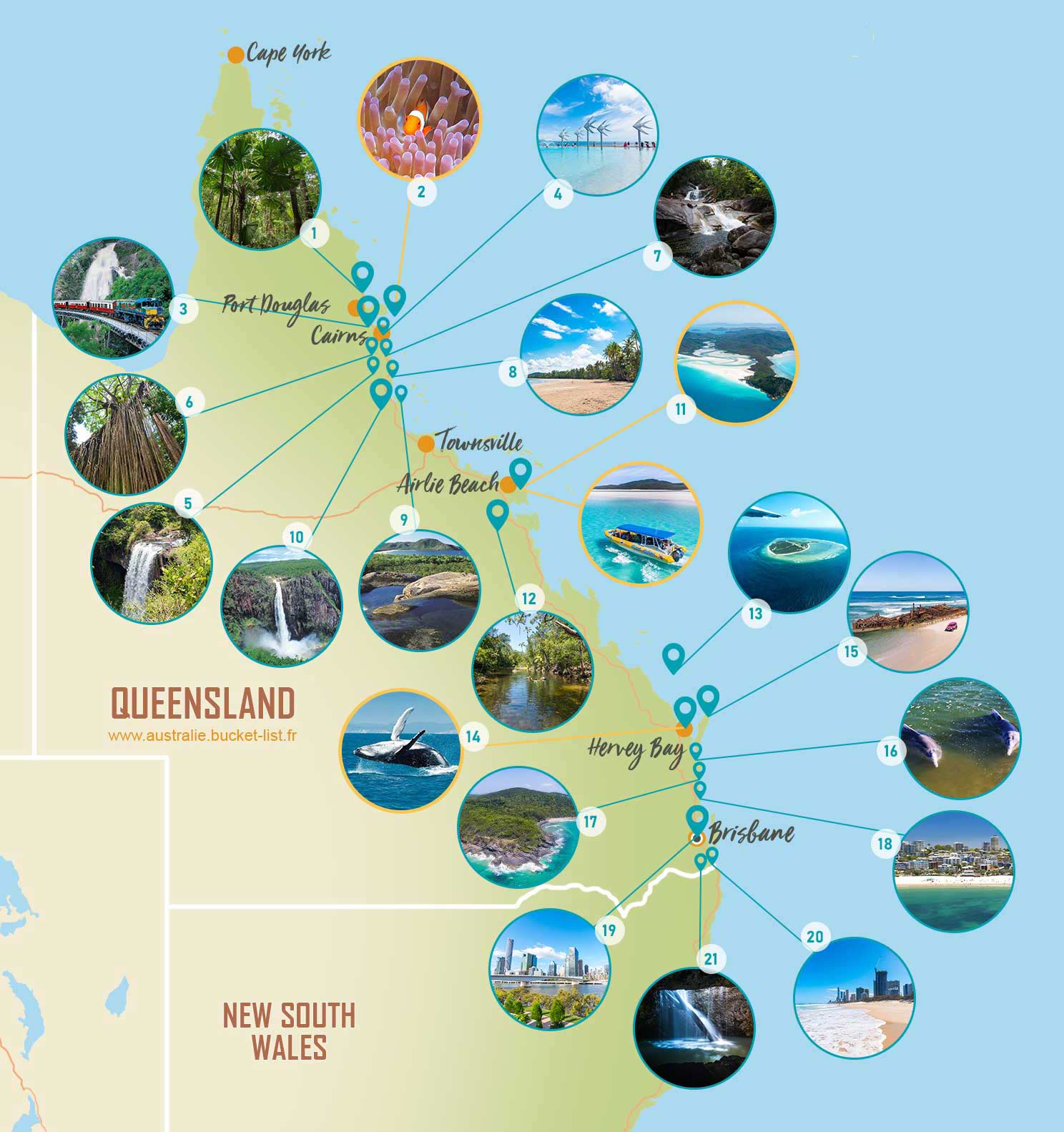 Cairns est une ville touristique du Queensland grâce à sa proximité avec la Grande Barrière de Corail et certaines îles comme Fitzroy Island ou Green Island. Son lagon artificiel, dont l’accès est gratuit, est idéal pour se rafraîchir.