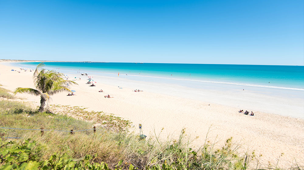 Cable beach, c’est 22 km de sable blanc baignĂ© par des eaux turquoises de l’ocĂ©an indien. Lieu idĂ©al pour profiter du coucher de soleil, vous avez Ă©galement l’opportunitĂ© de l’observer Ă dos de dromadaire australien. Cette plage tient son nom du câble tĂ©lĂ©graphique posĂ© entre Broome et Java en 1889. Profitez aussi de l’incroyable phĂ©nomène naturel « staircase to the Moon » ; l’escalier menant Ă la lune. Quelques jours par an, la lune se lève au dessus de l’ocĂ©an crĂ©ant des reflets dans l’eau similaire Ă des escaliers.